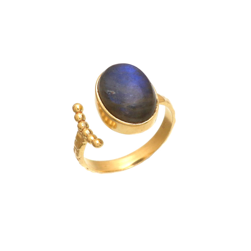 แหวนชุบทองเงินแท้18K 925ปรับได้แหวนอัญมณีลาบราดอไรต์สำหรับเป็นของขวัญ