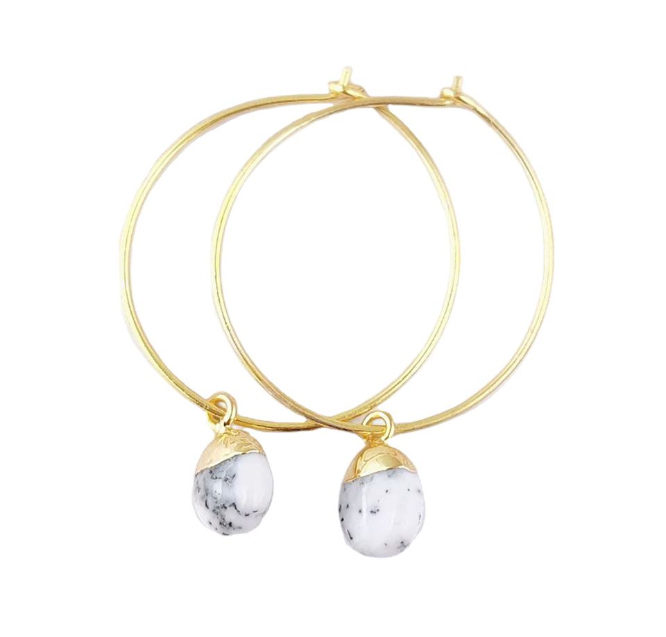 ต่างหูห่วงหินโอปอลเคลือบทองเงินแท้ 925 – ต่างหูห่วงประดับหินประจำเดือนเกิดทำมือสำหรับผู้หญิง