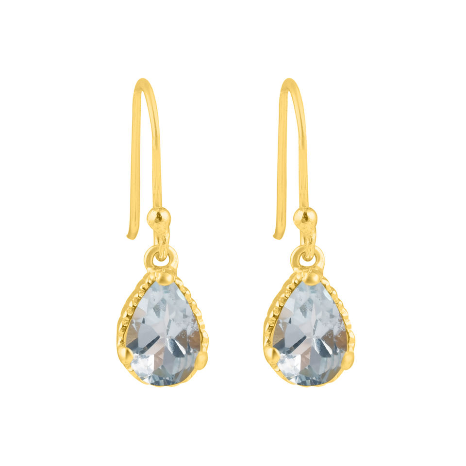 925 Sterling Silver Gold Plated Earring Pear Cut Blue Topaz Gemstone Fashionable Earring For Wedding Anniversary Engagement.