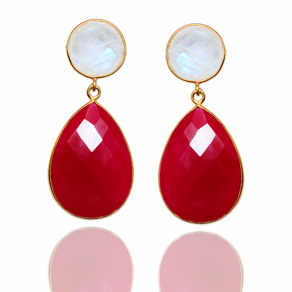 925ต่างหูชุบทองเงินสเตอร์ลิงอัญมณีสีแดงม่วงธรรมชาติเครื่องประดับแฟชั่นคุณภาพสูงสำหรับงานแต่งงานงานปาร์ตี้โรงงาน