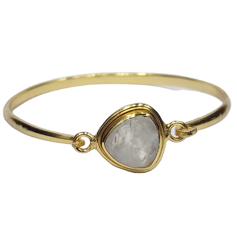 925 เงินสเตอร์ลิงชุบทองคุณภาพดีเยี่ยม Faceted Rainbow มูนสโตนอัญมณีแฮนด์เมดที่ไม่ซ้ํากันกําไลข้อมือปรับ