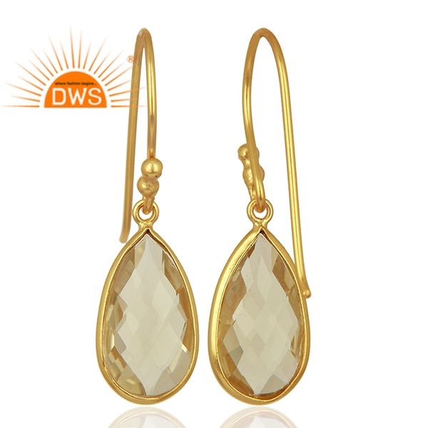 925เงินสเตอร์ลิงชุบทองธรรมชาติมะนาวบุษราคัมพลอยห้อยต่างหูสำหรับผู้หญิงเครื่องประดับผู้ผลิต