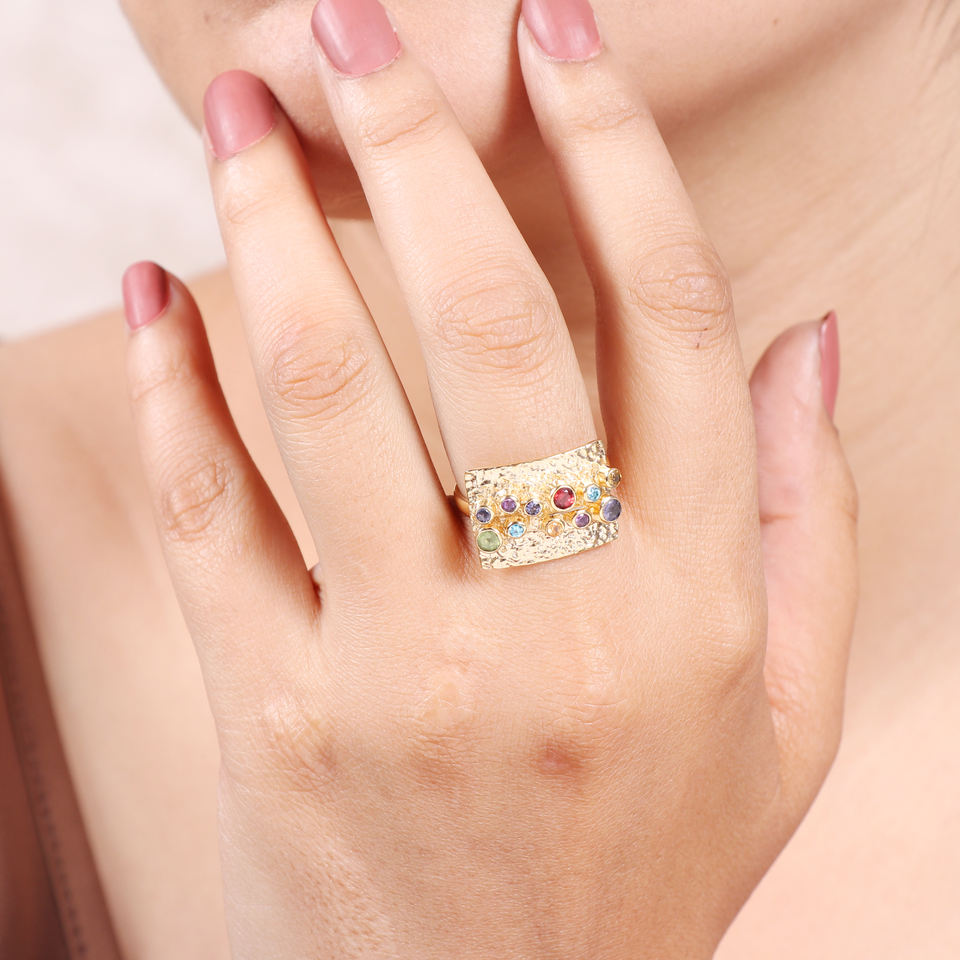 แหวนเรียงซ้อนพลอยสีเงินสเตอริง925ชุบทอง18K สำหรับงานแต่งงานและวันครบรอบ