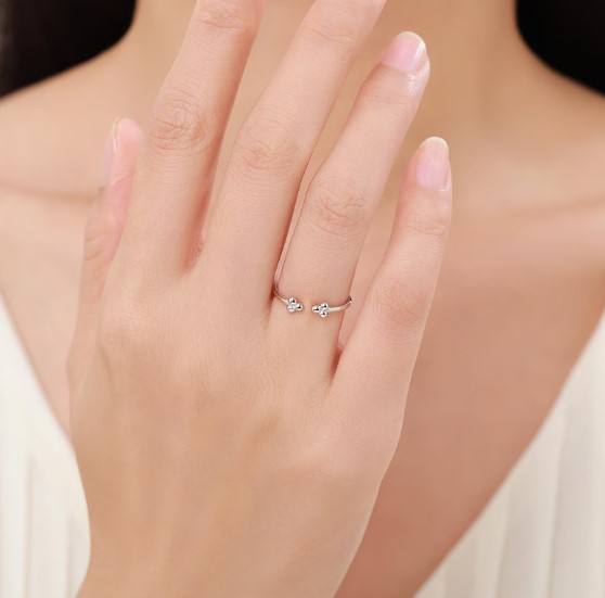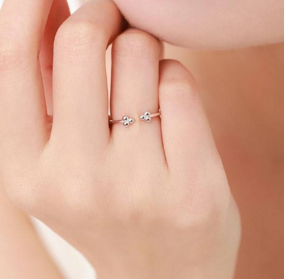 แหวนเงินแท้ 925 ชุบทอง 14K แบบปรับได้ ประดับเพชรซิคอน 3 เม็ด สำหรับงานหมั้นและงานแต่งงาน เครื่องประดับหรูหรา