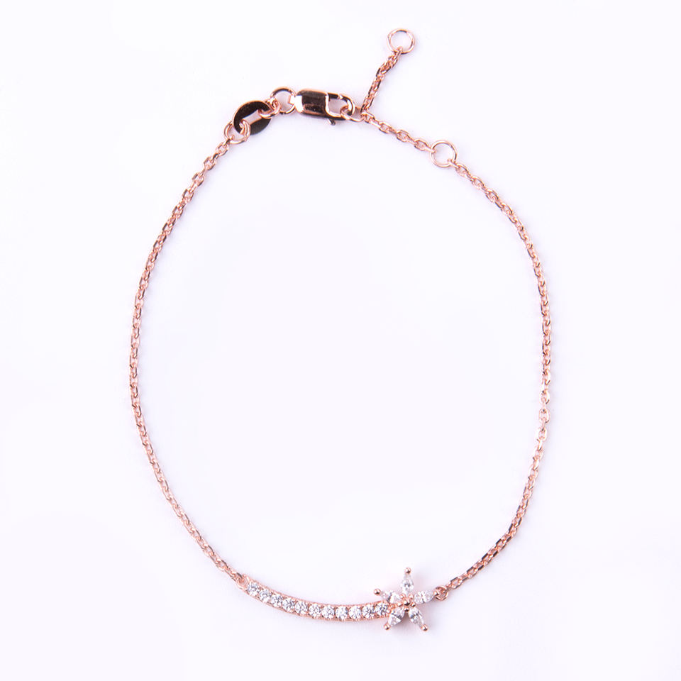 สร้อยข้อมือเงินแท้ 925 ชุบทองคำขาว ประดับจี้รูปดอกไม้ประดับเพชรซิร์คอน สำหรับผู้หญิง เหมาะสำหรับงานแต่งงานและเป็นของขวัญสำหรับงานปาร์ตี้