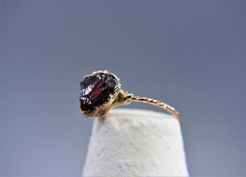 แหวนเงินสเตอร์ลิง925โกเมนสีแดงธรรมชาติขัดเงาพลอยหยาบไม่ผ่านกรรมวิธีของขวัญน่ารักสำหรับผู้หญิง