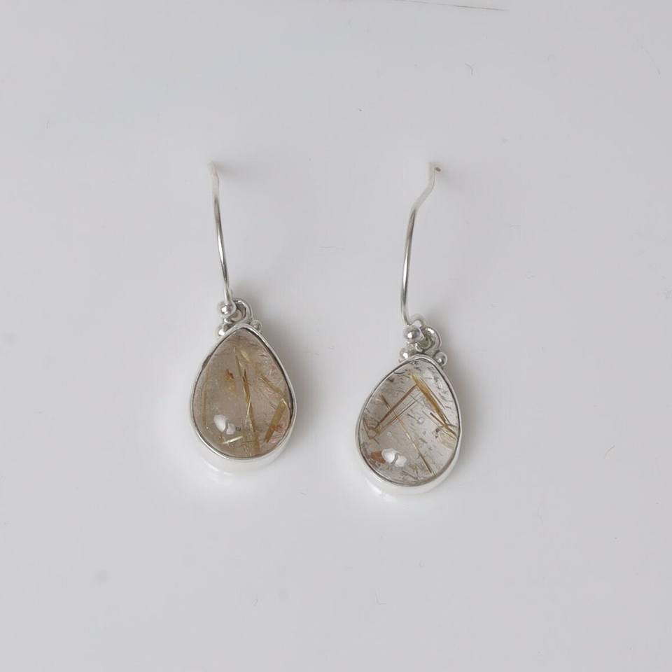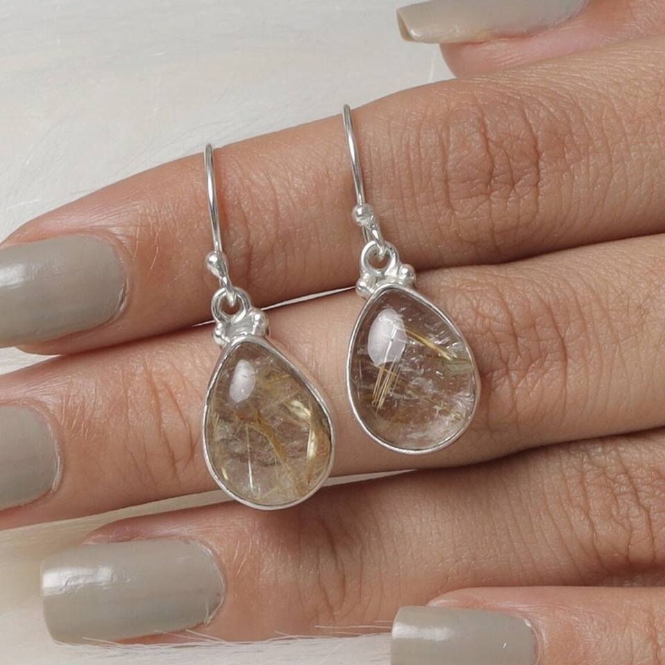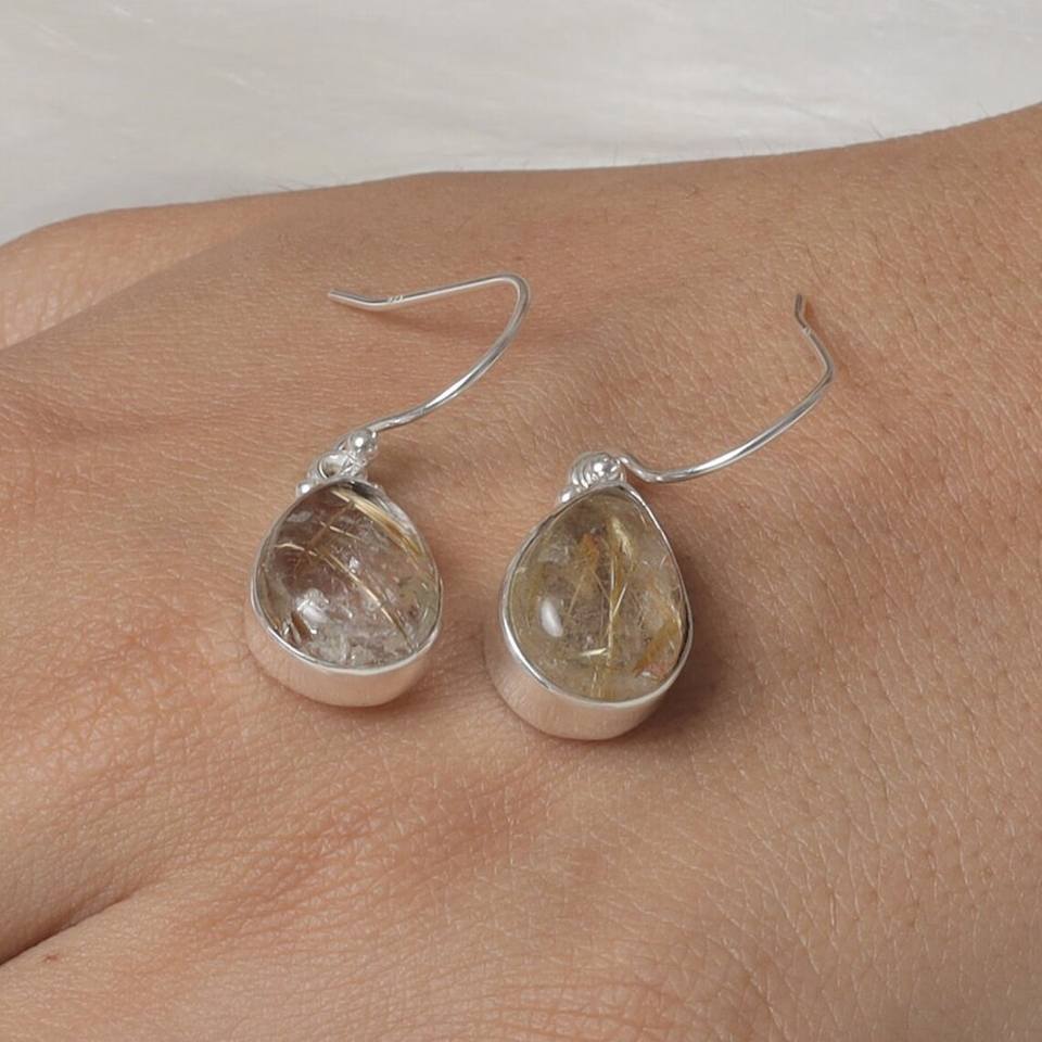 Product Name:Natural Golden Rutile Gemstone Silver Earrings