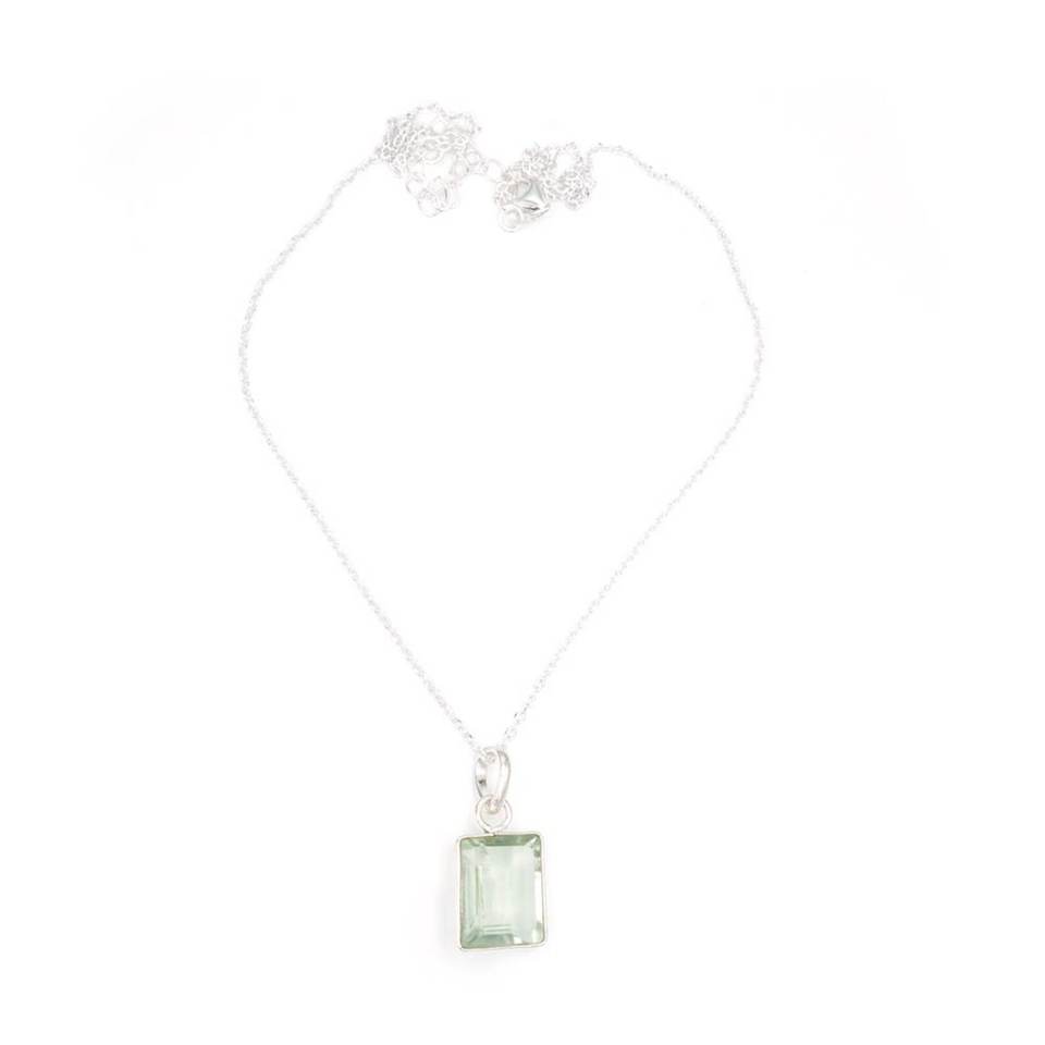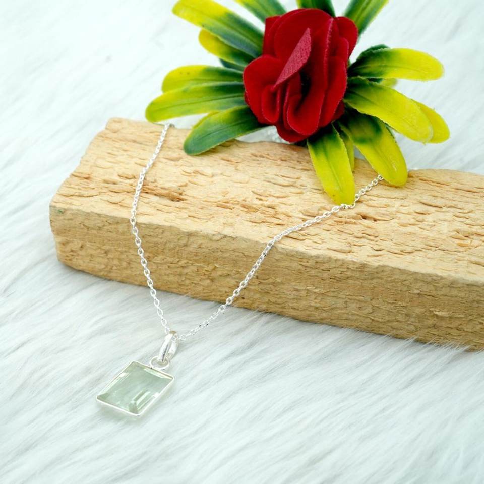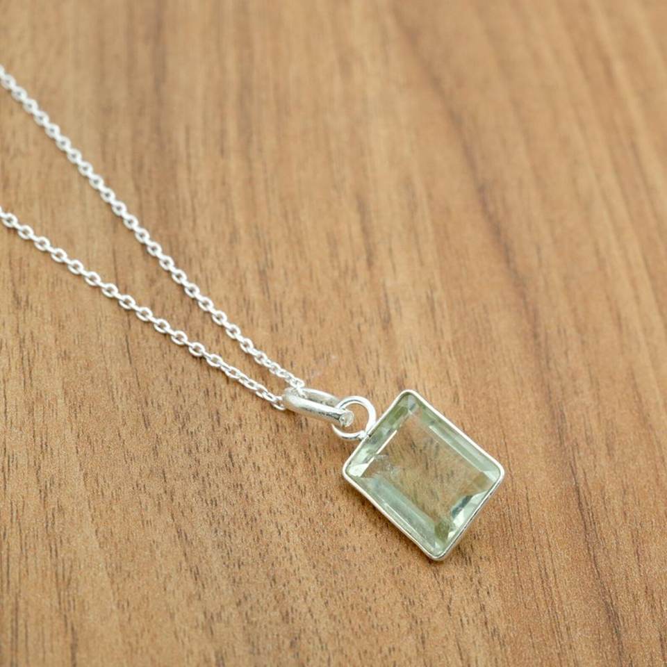 สร้อยคอพลอยอเมทิสต์สีเขียวเงินสเตอร์ลิง925เพชรพลอยเหลี่ยมพร้อมของขวัญแต่งงานทองคำสำหรับเธอ