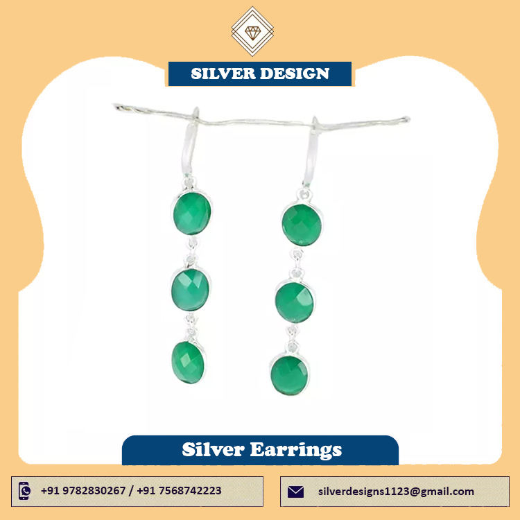 ต่างหูเงินแท้ประดับโอนิกซ์สีเขียว