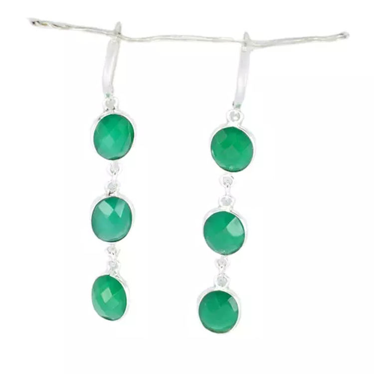 ต่างหูเงินแท้ 925 ประดับพลอยออนิกซ์สีเขียว ต่างหูห้อยประดับอัญมณ์ธรรมชาติ ของขวัญสำหรับเธอในวันครบรอบหรือวันเกิด