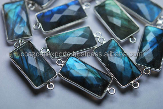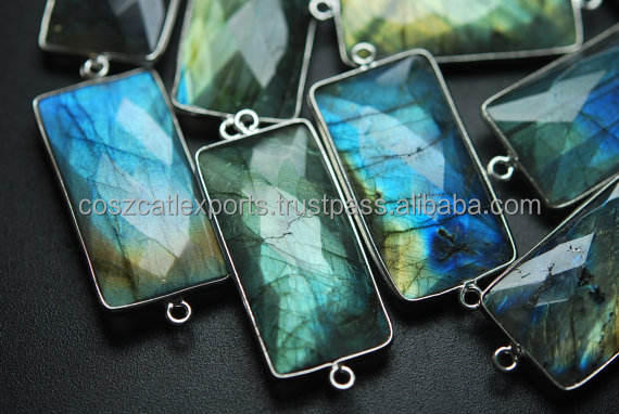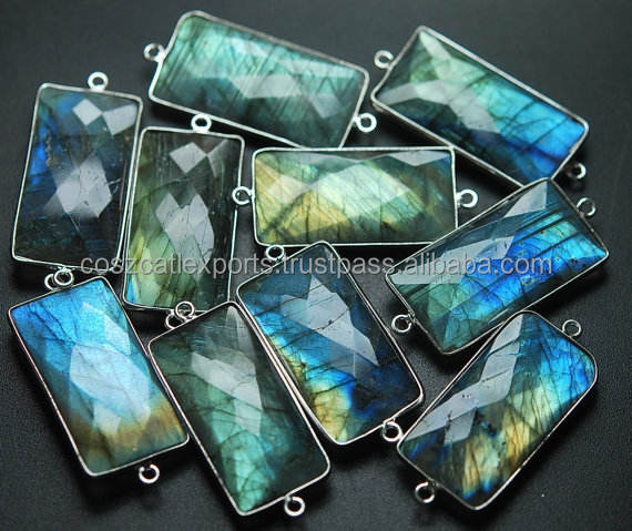 925สเตอริงเงินสีเทาอินเทรนด์สี่เหลี่ยมเหลี่ยมเพชรพลอยลาบราดอไรต์ตัวเรือนตัวเชื่อมต่อรูปร่างขนาด37มม. จี้เสน่ห์ของคริสเตียน