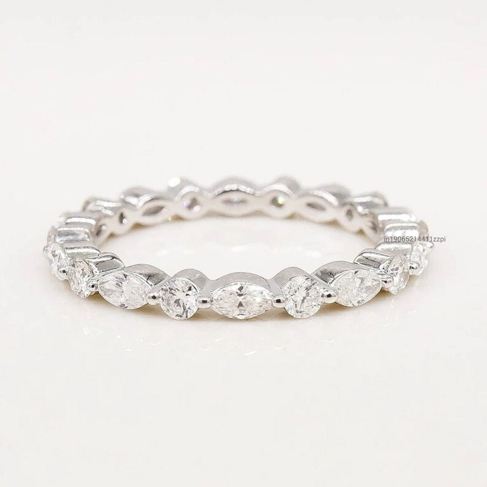 ชุดแหวนแต่งงานครึ่งส่วนทำจากเงินสเตอริง925มีง่ามใช้ร่วมกันชุดมาร์คีสตัดเพชรโมอีสทรงกลมของขวัญสำหรับผู้หญิง