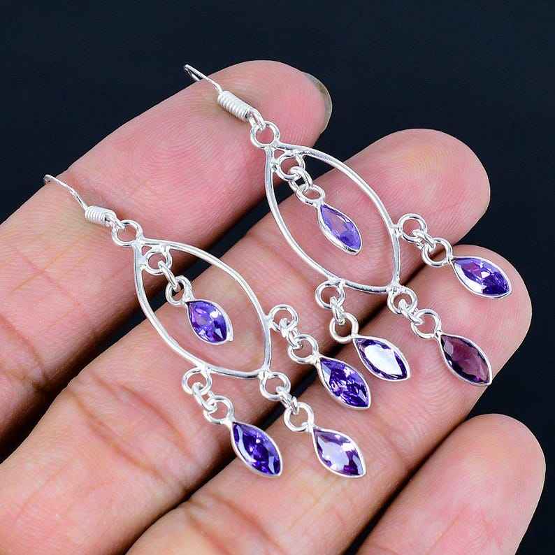 925เงินสเตอร์ลิงทำด้วยมือ4-หินร่วงธรรมชาติพลอยอเมทิสต์สีม่วงเครื่องประดับสำหรับงานเลี้ยงงานแต่งงาน