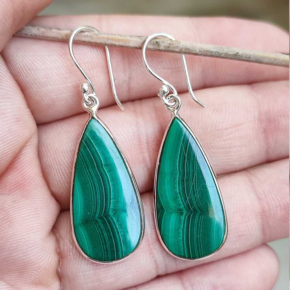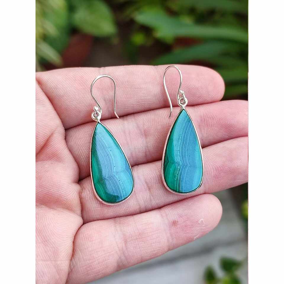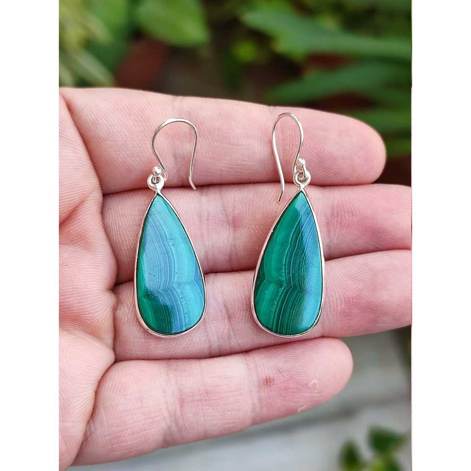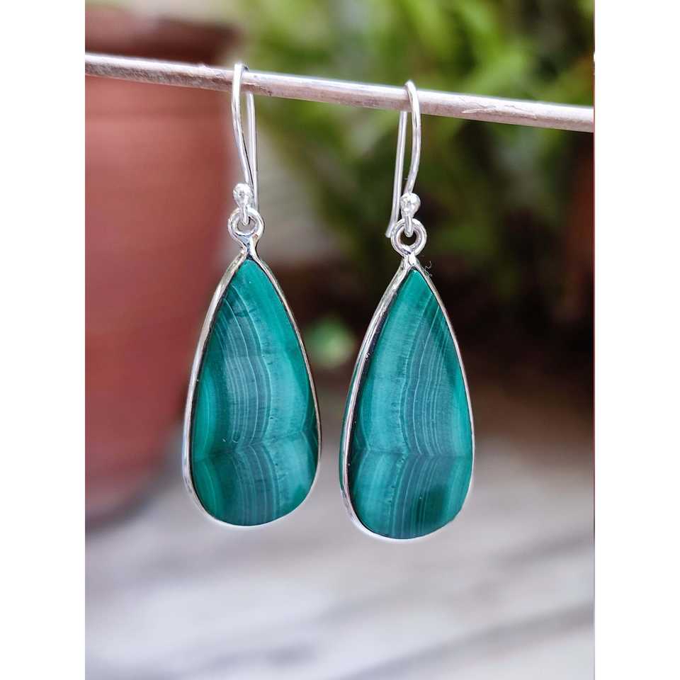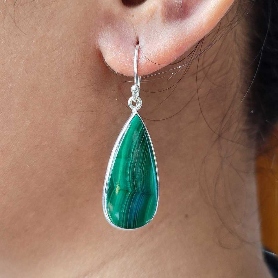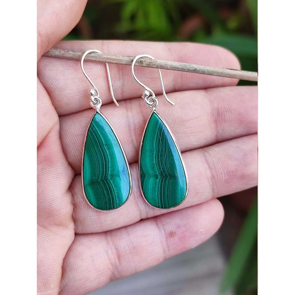 ต่างหูเงินแท้ 925 ทำมือ ทรงหยดน้ำ สไตล์วินเทจ ประดับพลอยมาลาไคต์รูปทรงลูกแพร์ ของขวัญวันเกิดสำหรับเธอ