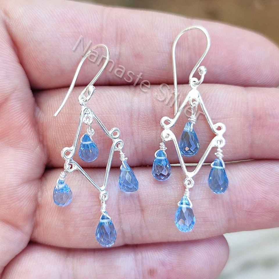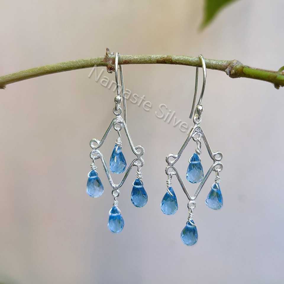 ต่างหูเงินแท้ 925 ทำมือ ประดับด้วยบลูโทแพซทรงหยดน้ำธรรมชาติ และมรกต ดีไซน์หรูหรา เหมาะเป็นของขวัญสำหรับเธอ