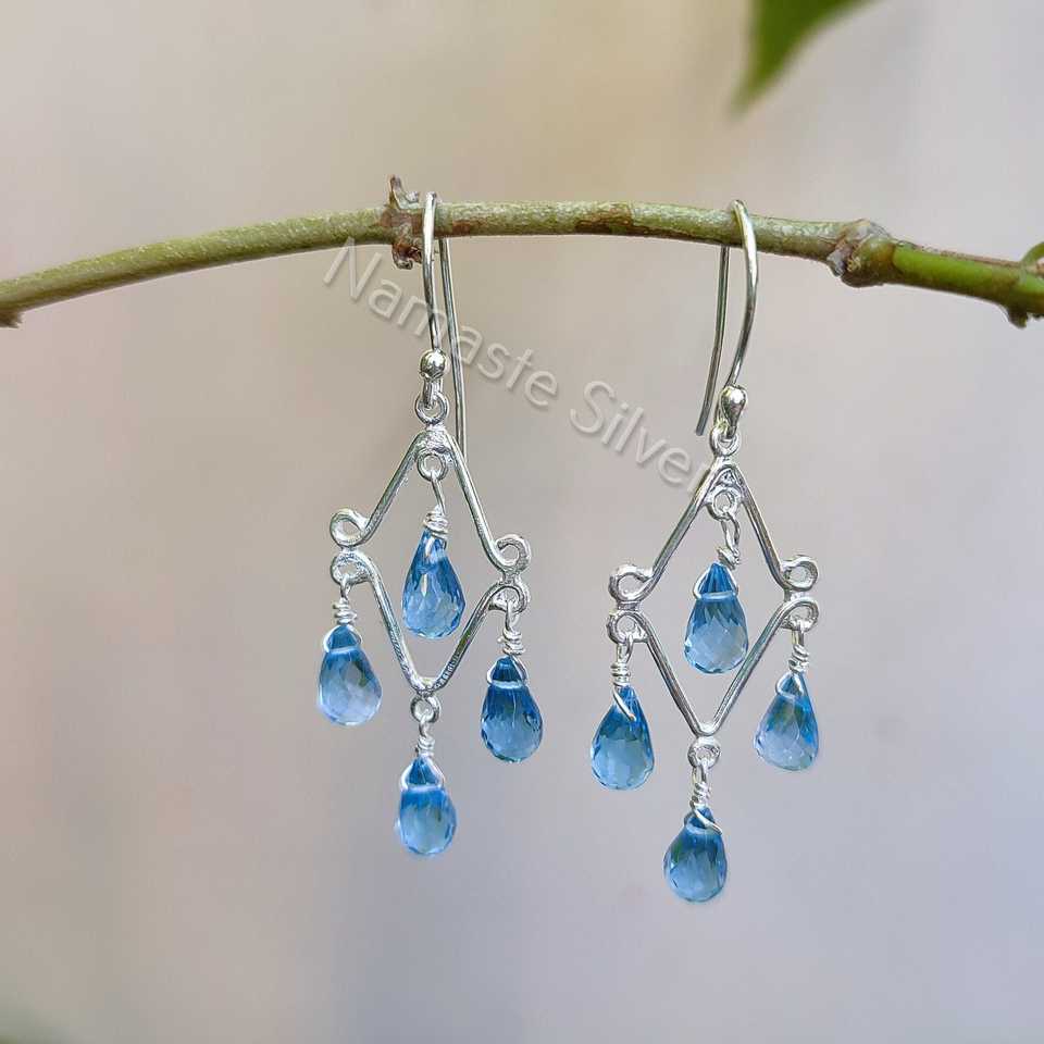 ต่างหูเงินแท้ 925 ทำมือ ประดับด้วยบลูโทแพซทรงหยดน้ำธรรมชาติ และมรกต เป็นของขวัญสำหรับเธอ