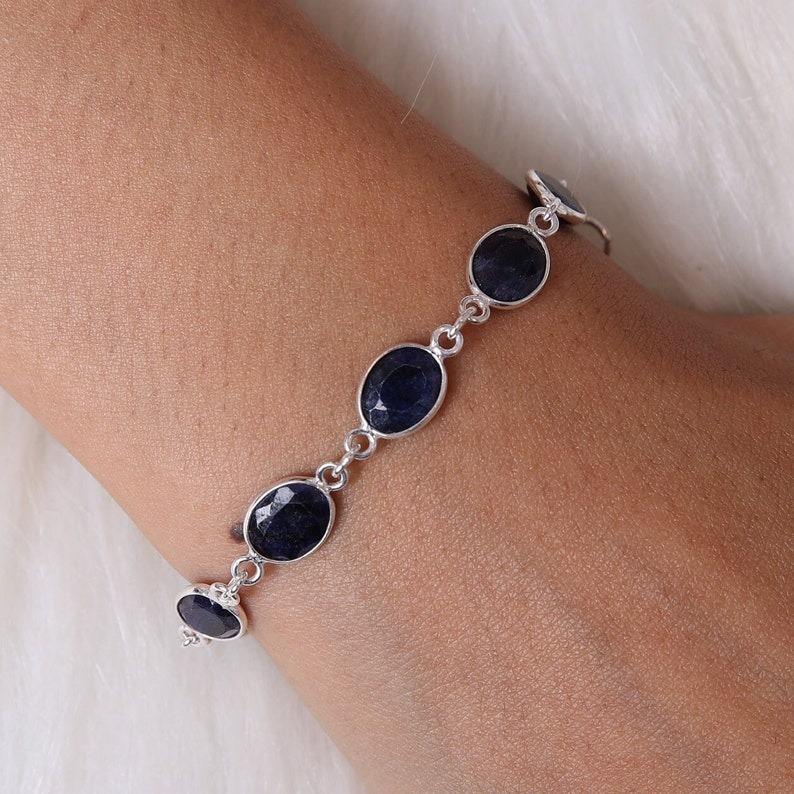 925สปินเนอร์เทนนิสทำมือไพลินเงินสเตอร์ลิงสร้อยข้อมือคุณภาพดีที่สุดได้รับการรับรองจาก925แข็ง