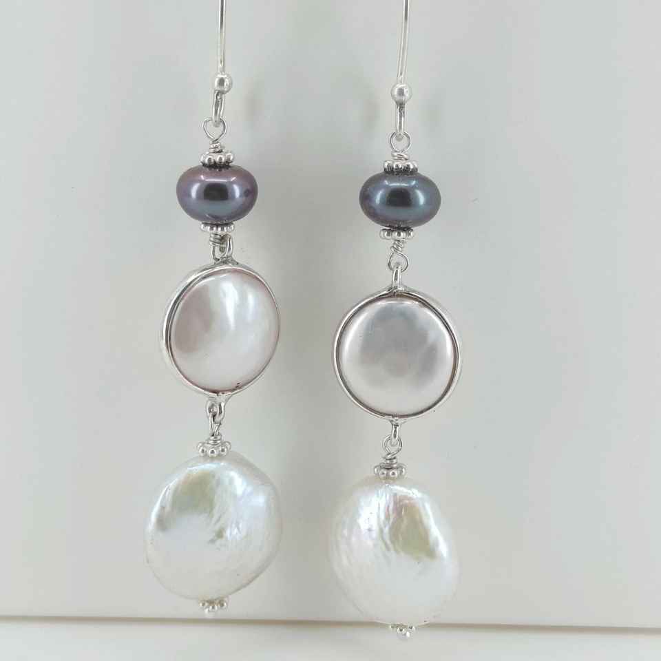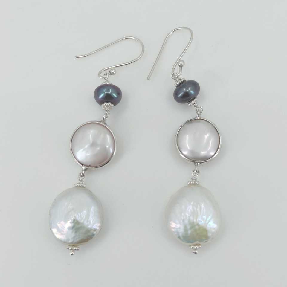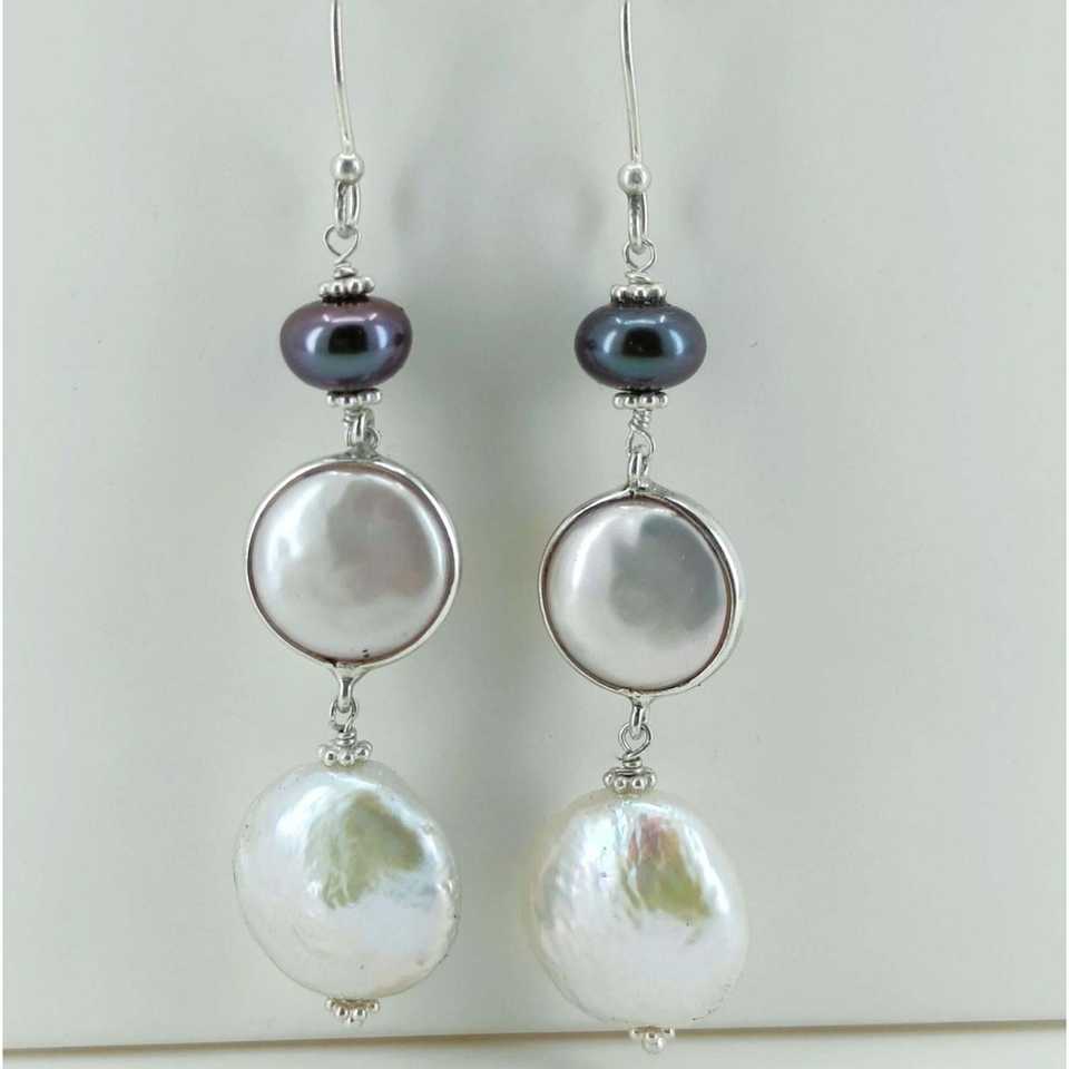 ต่างหูเงินแท้ 925 ประดับมุกน้ำจืดสีดำทรงเหรียญมุกบาโรก ดีไซน์ทรงโคมระย้าทันสมัย-ของขวัญ