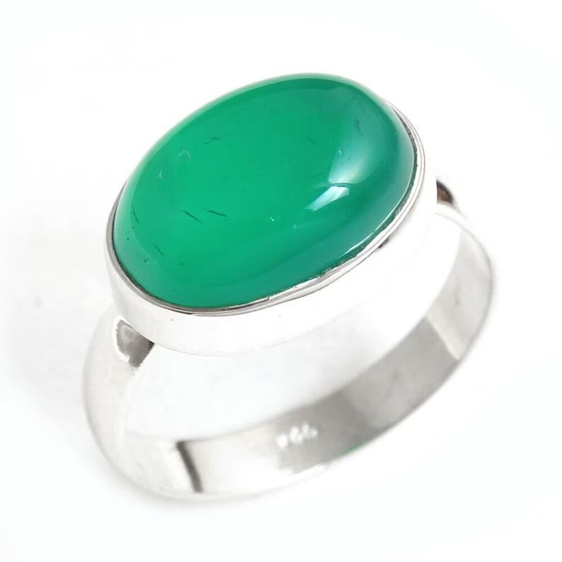 เงินแท้ 925 ประดับพลอยออนิกซ์สีเขียวธรรมชาติทรงรี ตัวเรือนแบบฝังขอบ งานแฮนด์เมด สไตล์คลาสสิก เหมาะสำหรับงานหมั้น งานแต่งงาน และวันครบรอบ