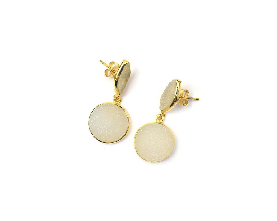 ต่างหูสตั๊ดชุบทองอัญมณีสีขาว925