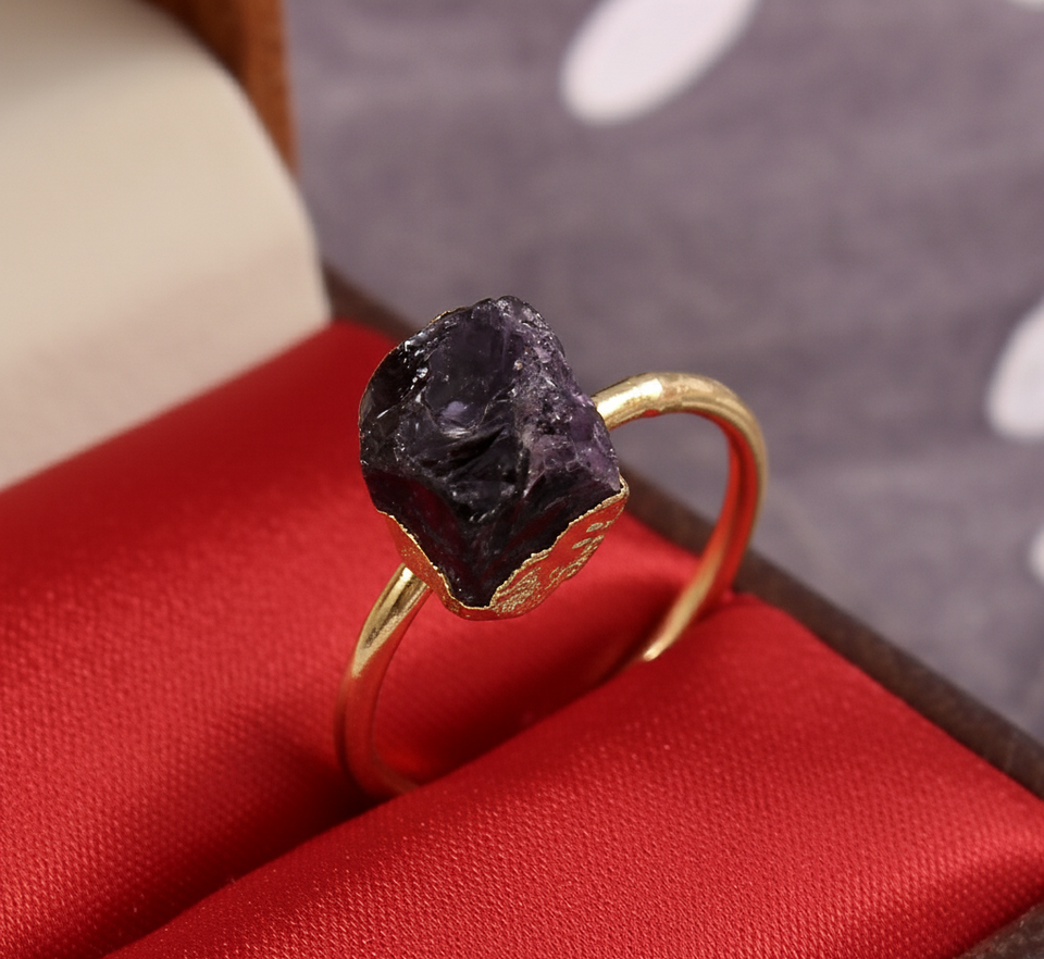 925 Sterling Silver Handmade Women's Classic Engagement Ring Natural Raw Amethyst Gold Plated Birthday Anniversary Gift