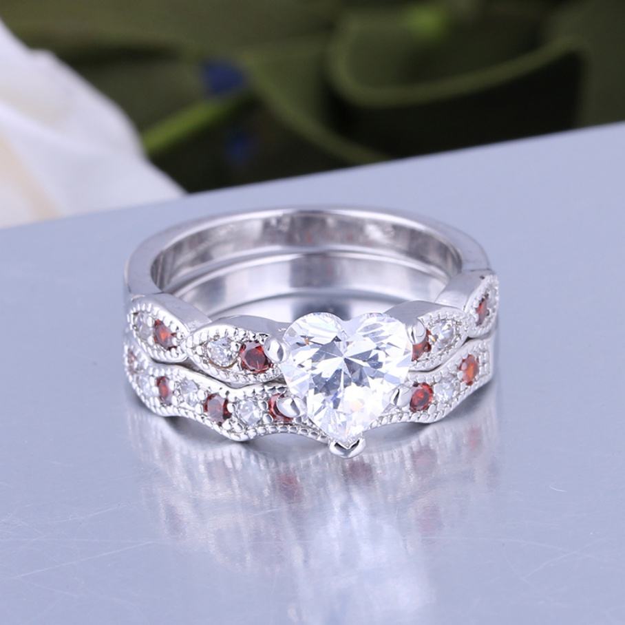 ชุดแหวนเพชร CZ ตัดรูปหัวใจสีเงินสเตอร์ลิง925ชุบโรเดียมสำหรับงานแต่งงานงานหมั้นการออกแบบในประเทศจีน