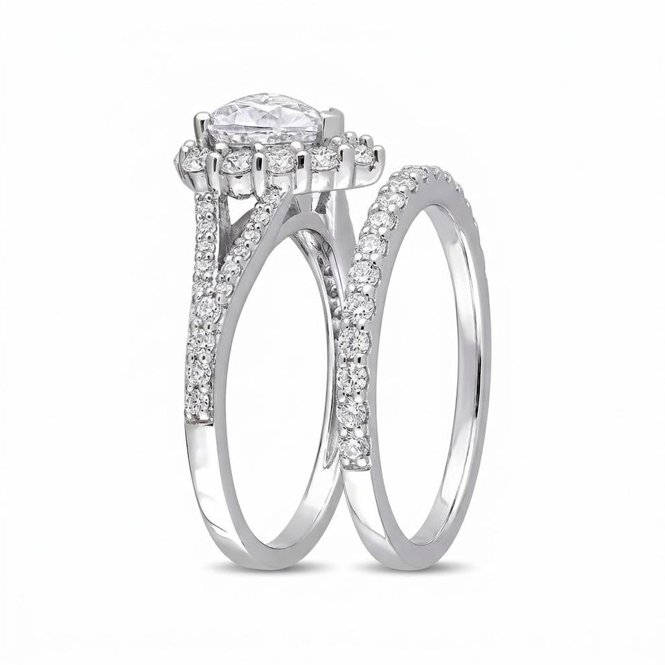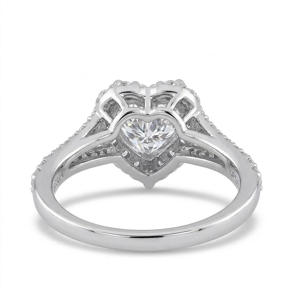 แหวนหมั้นเพชรทรงหัวใจเงินแท้ 925 ประดับเพชรแล็บโกรว์ ดีไซน์วงแหวนแบบ Halo Split Shank พร้อมแหวนแต่งงานเพชรทองคำบริสุทธิ์ 14K สำหรับผู้หญิง