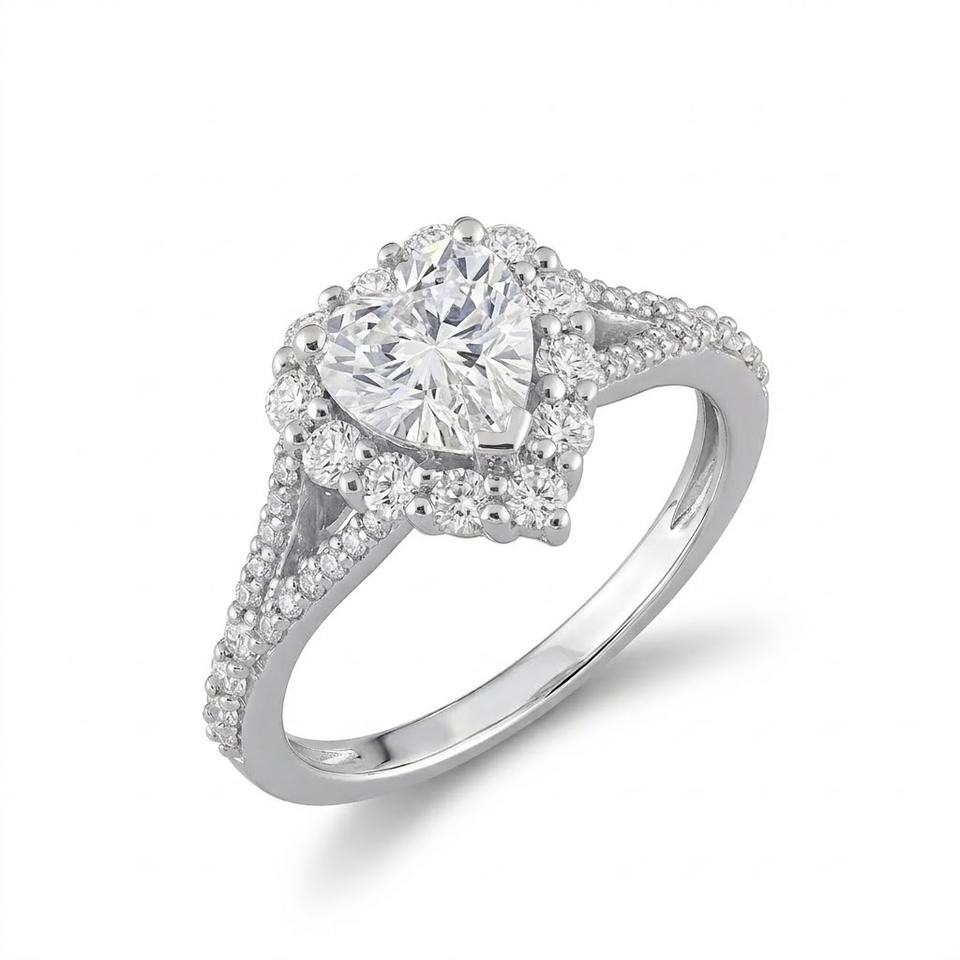 แหวนทอง 14K ประดับเพชรรูปหัวใจ ดีไซน์ฮาโล พร้อมขาแหวนแบบแยก