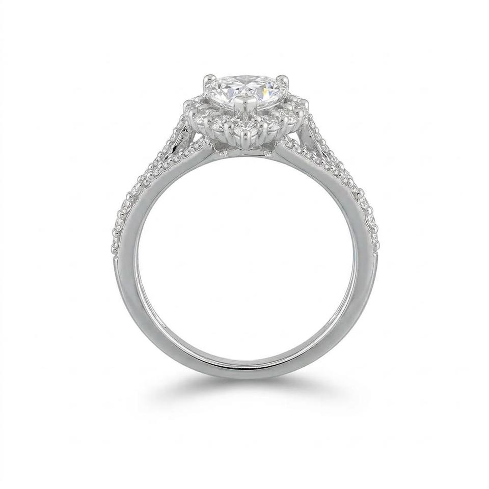 ชื่อผลิตภัณฑ์:แหวนทอง 14K ประดับเพชรรูปหัวใจ ดีไซน์ฮาโล พร้อมขาแหวนแบบแยก