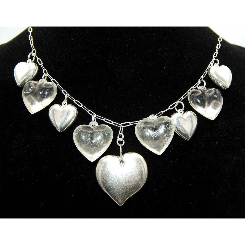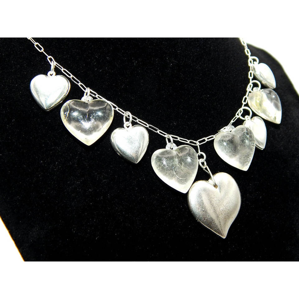 .925 Sterling Silver Heart Shaped Collar Necklace with Puffed Glass Fashion Pendant Unique and Stylish