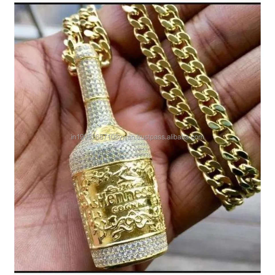 สร้อยจี้ขวดเงินแท้925ประดับเพชรสวิส VVS Moissanite เครื่องประดับแนวฮิปฮอปแนวแร็ปเปอร์