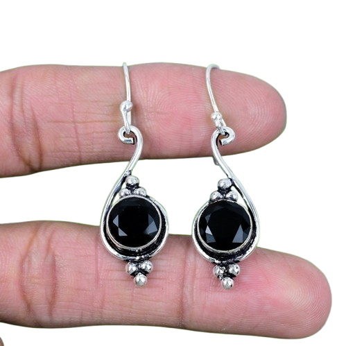 ต่างหูเงินประทับ925คุณภาพสูงของขวัญแต่งงานแบบคลาสสิก925เงินสเตอร์ลิงทำด้วยมือพลอยสีดำนิลต่างหูสปินเนอร์