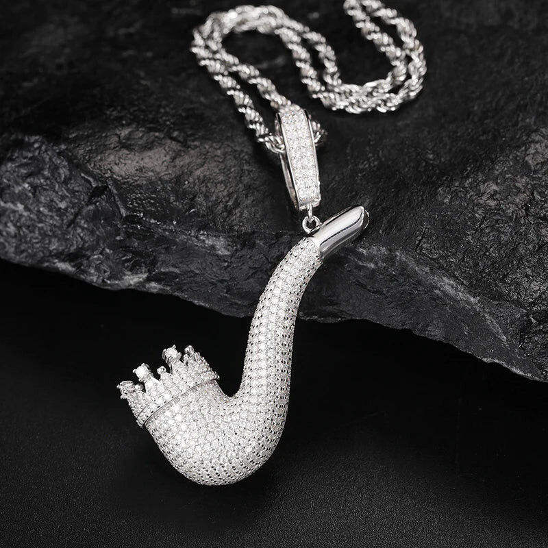 จี้รูปไปป์สูบบุหรี่สไตล์ฮิปฮอป เงินแท้ 925 ประดับโมอิสซาไนต์ ชุบทอง 14K เครื่องประดับชั้นดีสำหรับทุกเพศ
