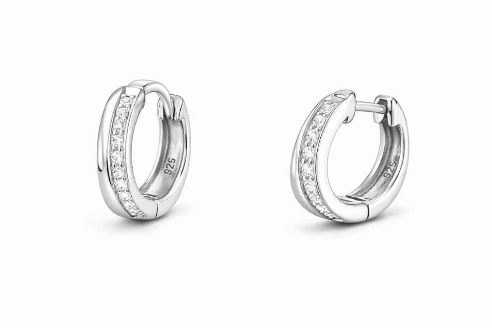 ต่างหูเงินแท้ 925 แบบห่วง ประดับด้วยเพชร CZ ดีไซน์มินิมอล ต่างหูเงินแท้สำหรับผู้ชายและผู้หญิง รับผลิตตามแบบ (OEM) ขายส่ง ต่างหูเงิน