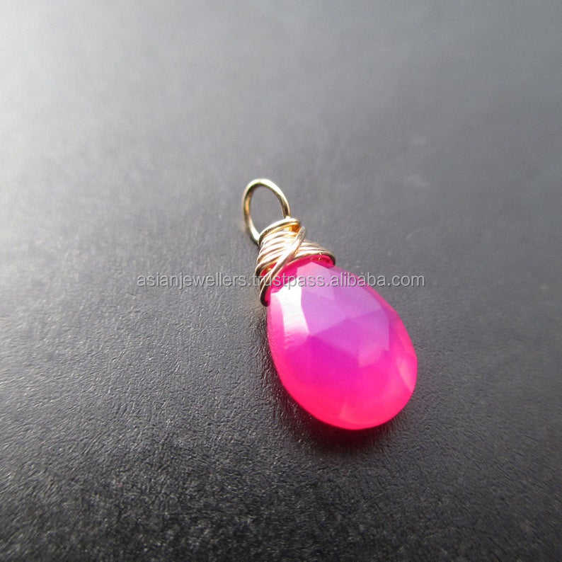 925เงินสเตอร์ลิงร้อนสีชมพูChalcedonyพลอยทองVermeilจี้สร้อยคอแฮนด์เมดอินเดียเครื่องประดับ