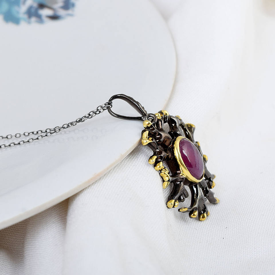 925เงินสเตอร์ลิงร้อนขายเสน่ห์โซ่สร้อยคอทับทิมพลอยต้นไม้บรันช์การออกแบบจี้ราคาถูกที่สุดเครื่องประดับผู้ค้าส่ง