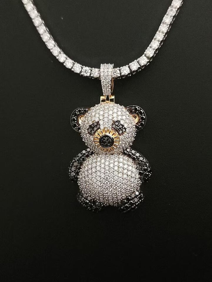 เท็ดดี้โมอิสสีขาวและดำจี้เงิน925เย็น