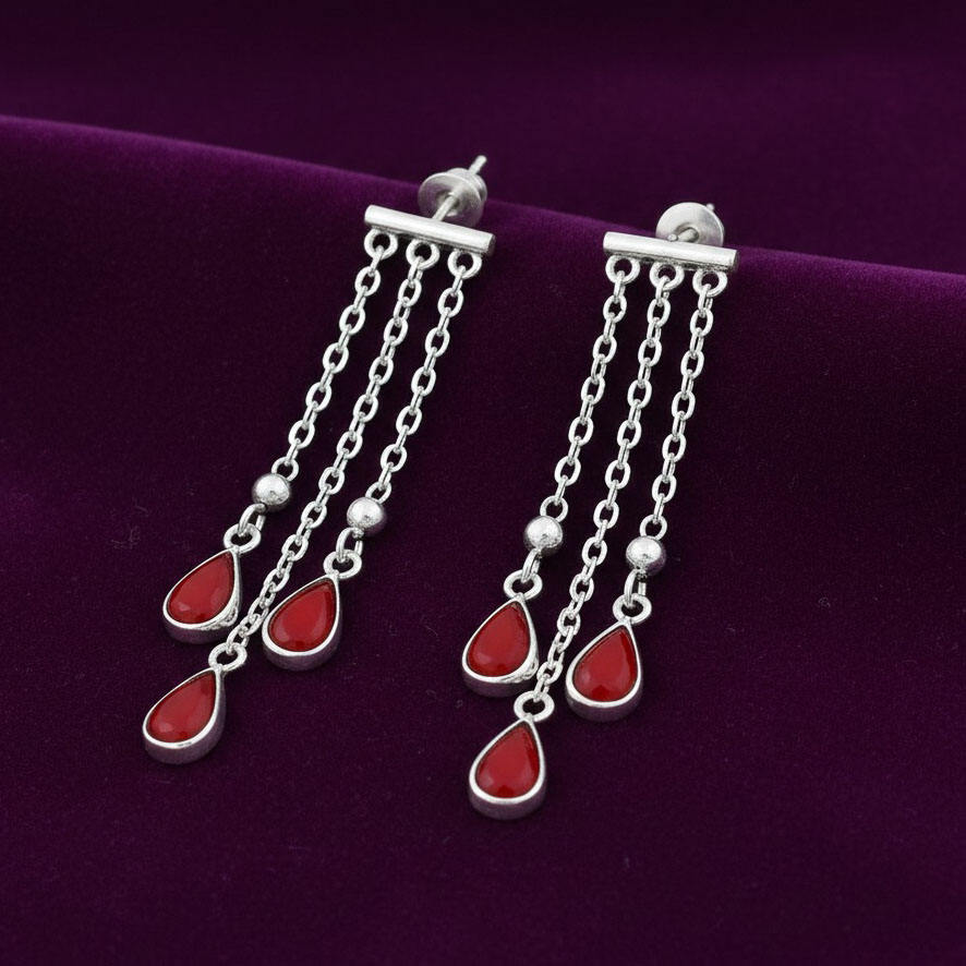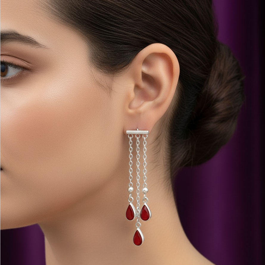 ต่างหูเงินแท้ 925 แบบอินเดียประดับด้วยหินออนิกซ์สีแดงรูปหยดน้ำ | ต่างหูงานแฮนด์เมดสุดฮิตสำหรับงานแต่งงานและงานปาร์ตี้ ขายส่ง