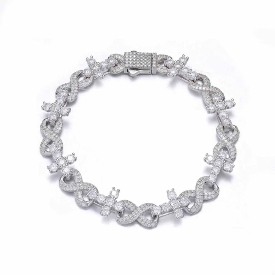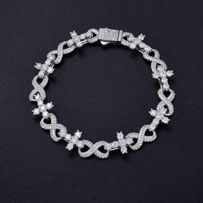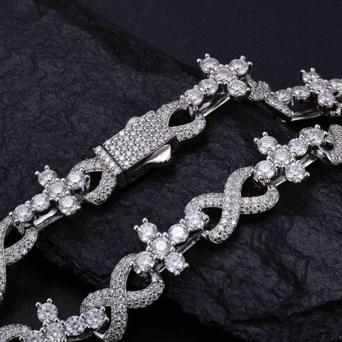 สร้อยข้อมือเงินแท้ 925 ลายอินฟินิตี้ประดับกากบาท ประดับเพชรโมอิสซาไนต์ VVS คุณภาพสูง ชุบโรเดียมสี D ผ่านการทดสอบด้วยเครื่องตรวจสอบเพชร