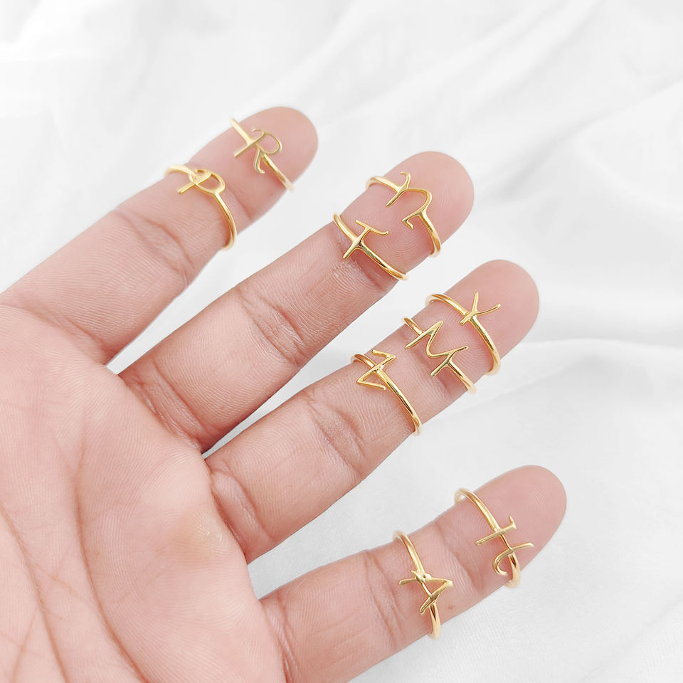 แหวนเงินแท้ 925 ตัวอักษร “M” – แหวนชุบทองทำมือแบบซ้อนได้สำหรับผู้หญิง