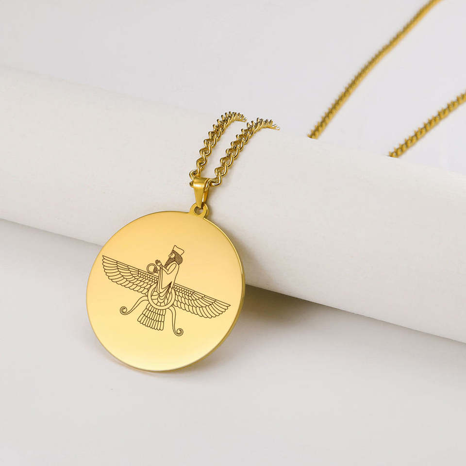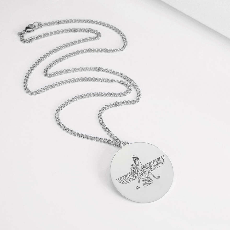 สร้อยคอเงินแท้ 925 ลายฟาร์วาฮาร์แบบเปอร์เซียอิหร่าน จี้แบบโซโรอัสเตรียน อฮูรา มาซดา เครื่องประดับทางศาสนา ของขวัญสำหรับผู้หญิงและผู้ชาย