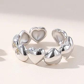 แหวนเงินสเตอริงสไตล์เกาหลีญี่ปุ่น925ใหม่อินเทรนด์อินฟลูเอนเซอร์หัวใจเชื่อมต่อวินเทจเปิดข้อมือผู้หญิง