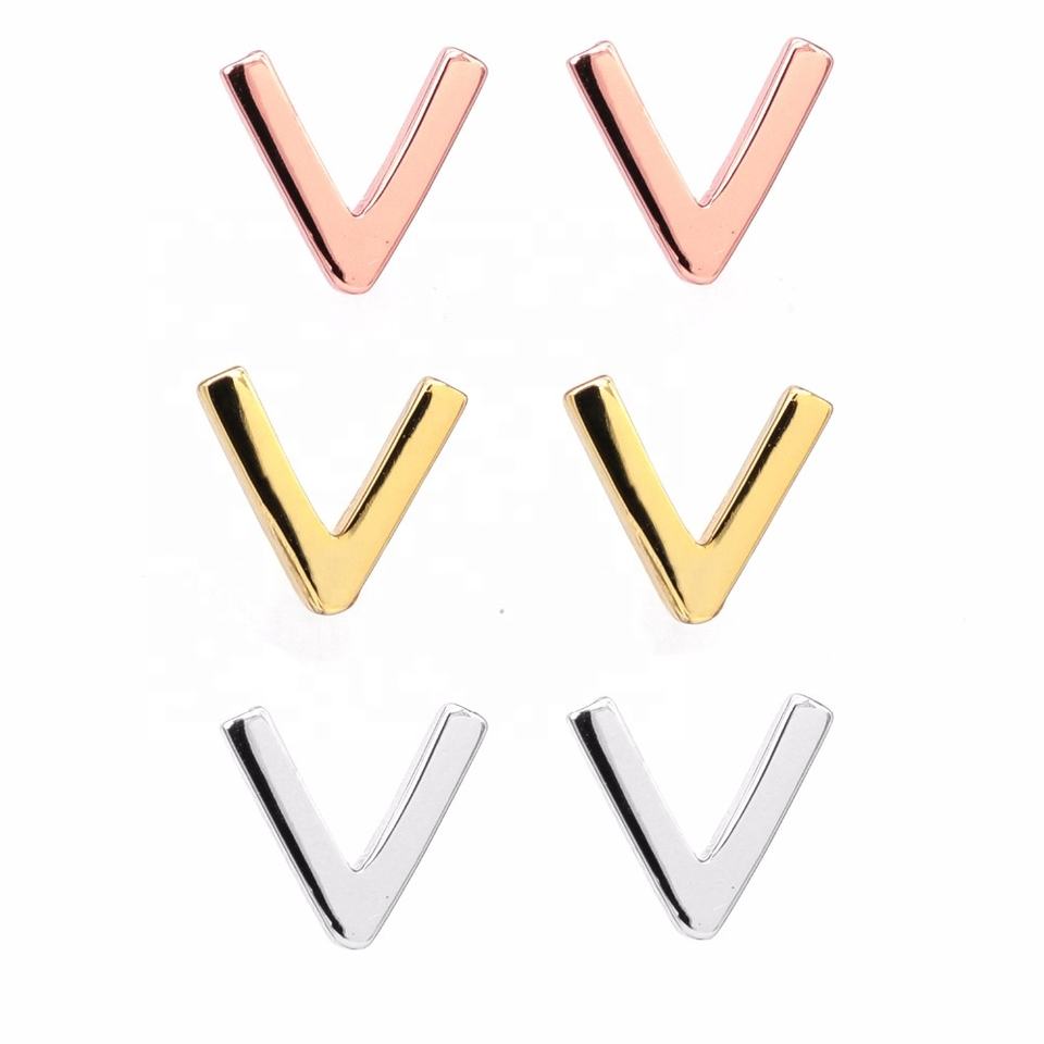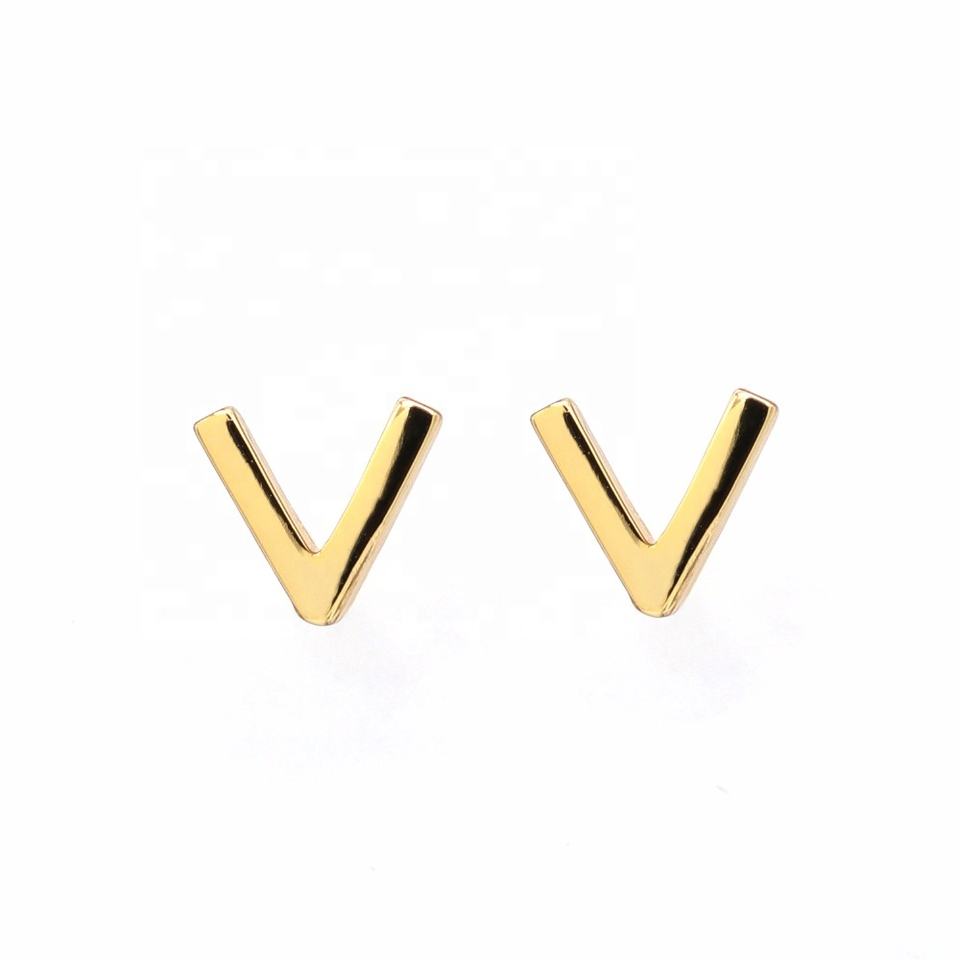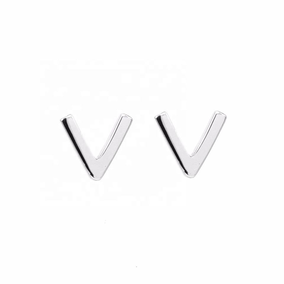 925เครื่องประดับเงินสเตอร์ลิงต่างหูเริ่มต้นตัวอักษรตัวอักษร V ต่างหูสตั๊ดเครื่องประดับสำหรับผู้หญิงและเด็ก