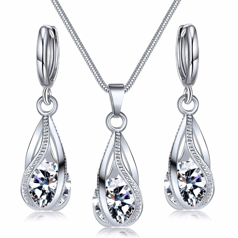 925เงินสเตอร์ลิงชุดเครื่องประดับสำหรับผู้หญิงเซอร์โคเนียหินเจ้าหญิงเคทเจ้าสาวแต่งงานสร้อยคอต่างหู