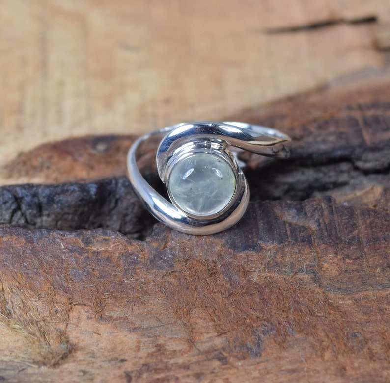 แหวนพลอย June เงินสเตอร์ลิง925ชุดเครื่องประดับอัญมณีเจียระไนลูกแพร์พรีไนต์สีเขียวธรรมชาติดีไซน์เนอร์เครื่องประดับสำหรับงานแต่งงานที่ดีสำหรับทุกเพศ