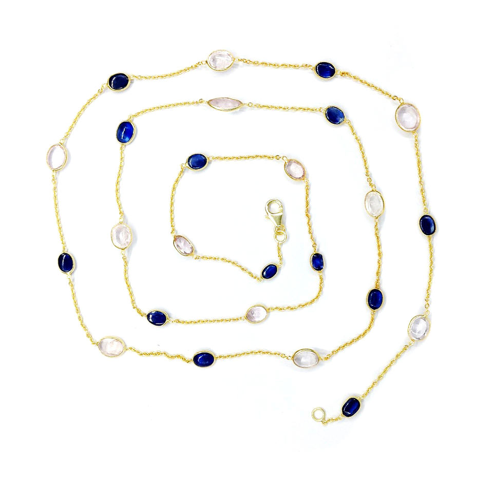 สร้อยคอเงินแท้ 925 ประดับไคยาไนต์และมอร์แกไนต์