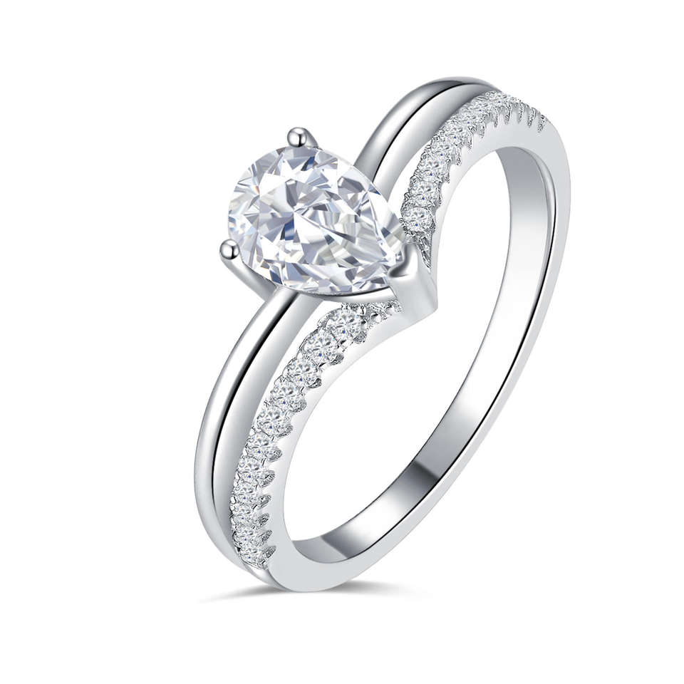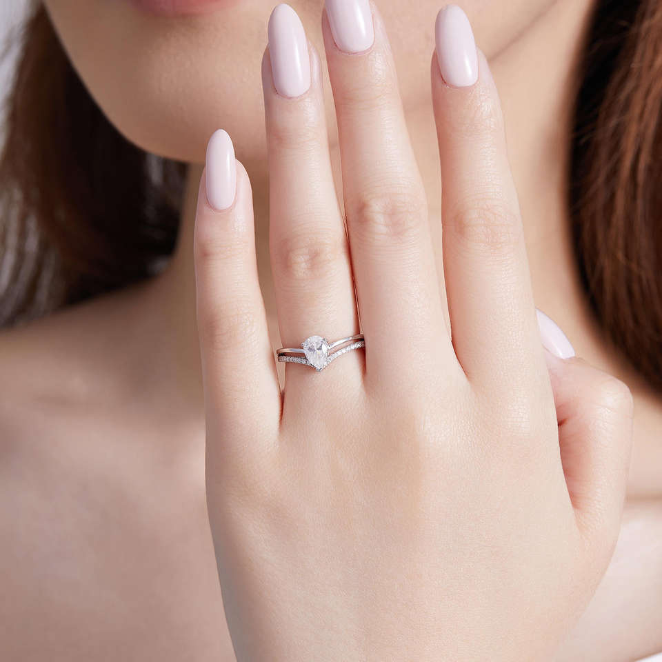 แหวนหมั้นเพชรทรงลูกแพร์เงินแท้ 925 ประดับเพชรแล็บ ทองคำขาว 14K ดีไซน์เกลียวโค้งแบบซ้อนได้ ของขวัญสำหรับเธอ