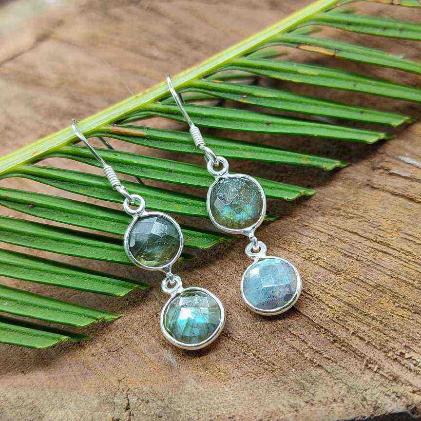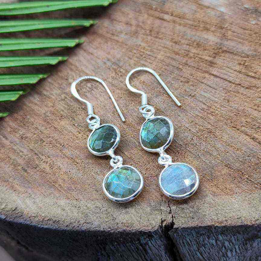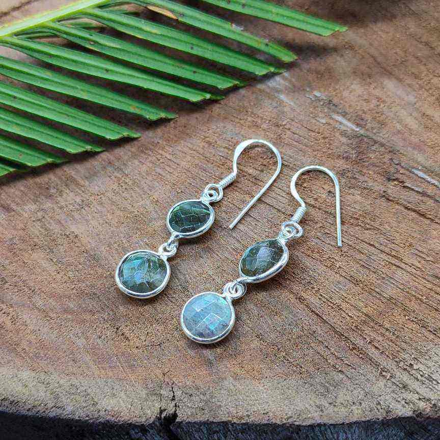 ต่างหูแบบห้อยประดับหินแร่ลาบราดอไรต์สีเงินสเตอร์ลิง925สำหรับผู้หญิงต่างหูโบฮีเมียน
