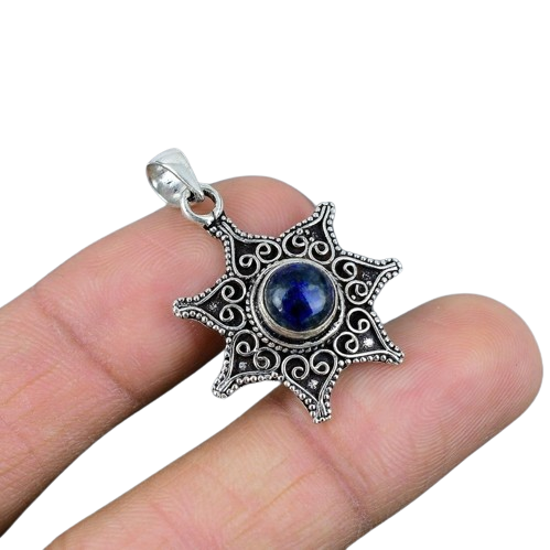 925เงินแท้ Lapis Lazuli ทรงกลมจี้อัญมณีทำด้วยมือของขวัญแต่งงานที่สมบูรณ์แบบสำหรับความรักกับ925เครื่องประดับประทับ