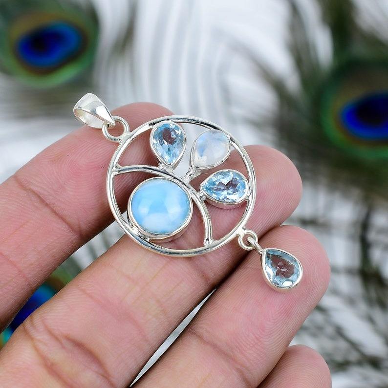 925 เงินสเตอร์ลิง Larimar รูปร่างลูกแพร์สีเขียวสร้อยคออัญมณีงานแต่งงานที่สมบูรณ์แบบของขวัญสําหรับความรัก 925 ประทับตราเครื่องประดับ